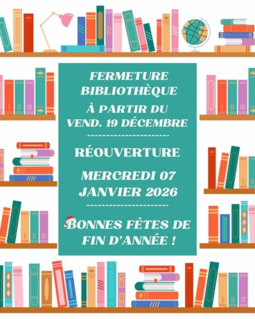 Votre Bibliothèque sera fermé du vendredi 19 décembre 2025 jusqu’au 06 janvier 2026.