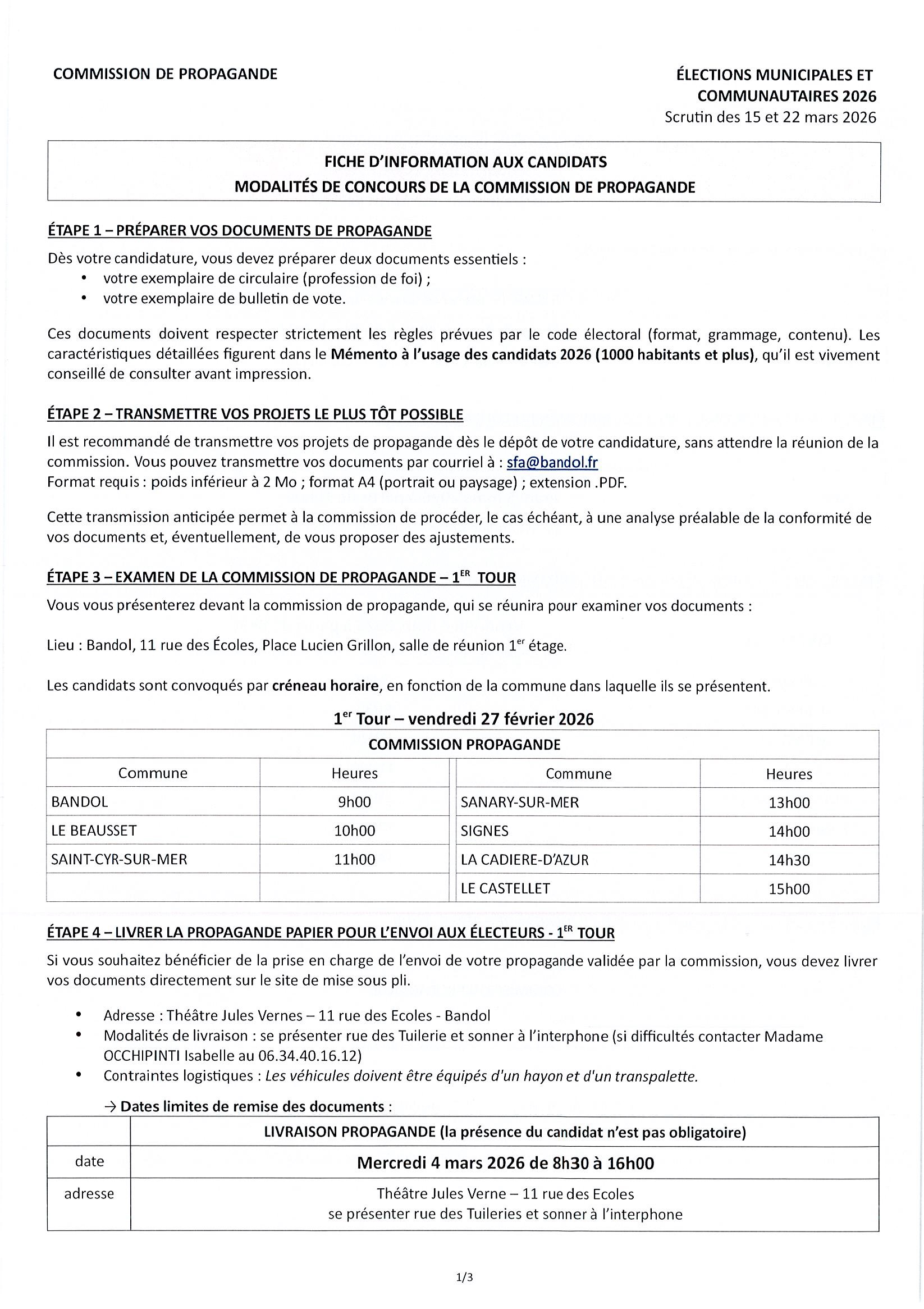 FICHE D’INFORMATIONS AUX CANDIDATS – Elections Municipales et Communautaires 2026