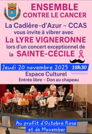 Nous vous invitons à vibrer avec La Lyre Vigneronne lors d’un concert exceptionnel de la Sainte-Cécile le Jeudi 20 Novembre 2025 à 18h30 à l’espace culturel de La Cadière d’Azur.